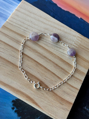 Elevate your style with this elegant Amethyst Bracelet, crafted from flat, natural amethyst gemstones set in sterling silver. Known as the stone of calm and clarity, amethyst adds a touch of spiritual balance while enhancing any outfit.
