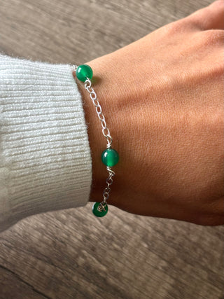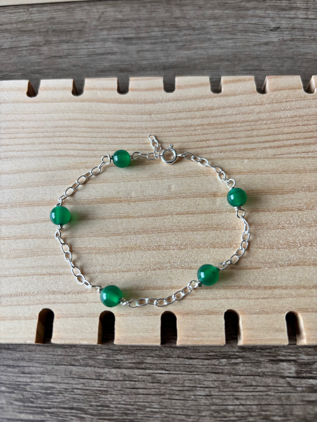 Add a touch of natural beauty to your style with this elegant Green Agate Bracelet, designed with smooth 6mm natural green agate gemstones and finished with sterling silver 925. Green agate is known for its grounding and harmonising properties, making this bracelet as meaningful as it is stylish.