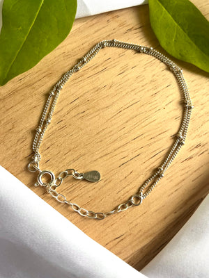 This double chain satellite bracelet shows a lot of softness and delicacy. It can be worn in any combination. It will be a delicate addition to your personal collection!