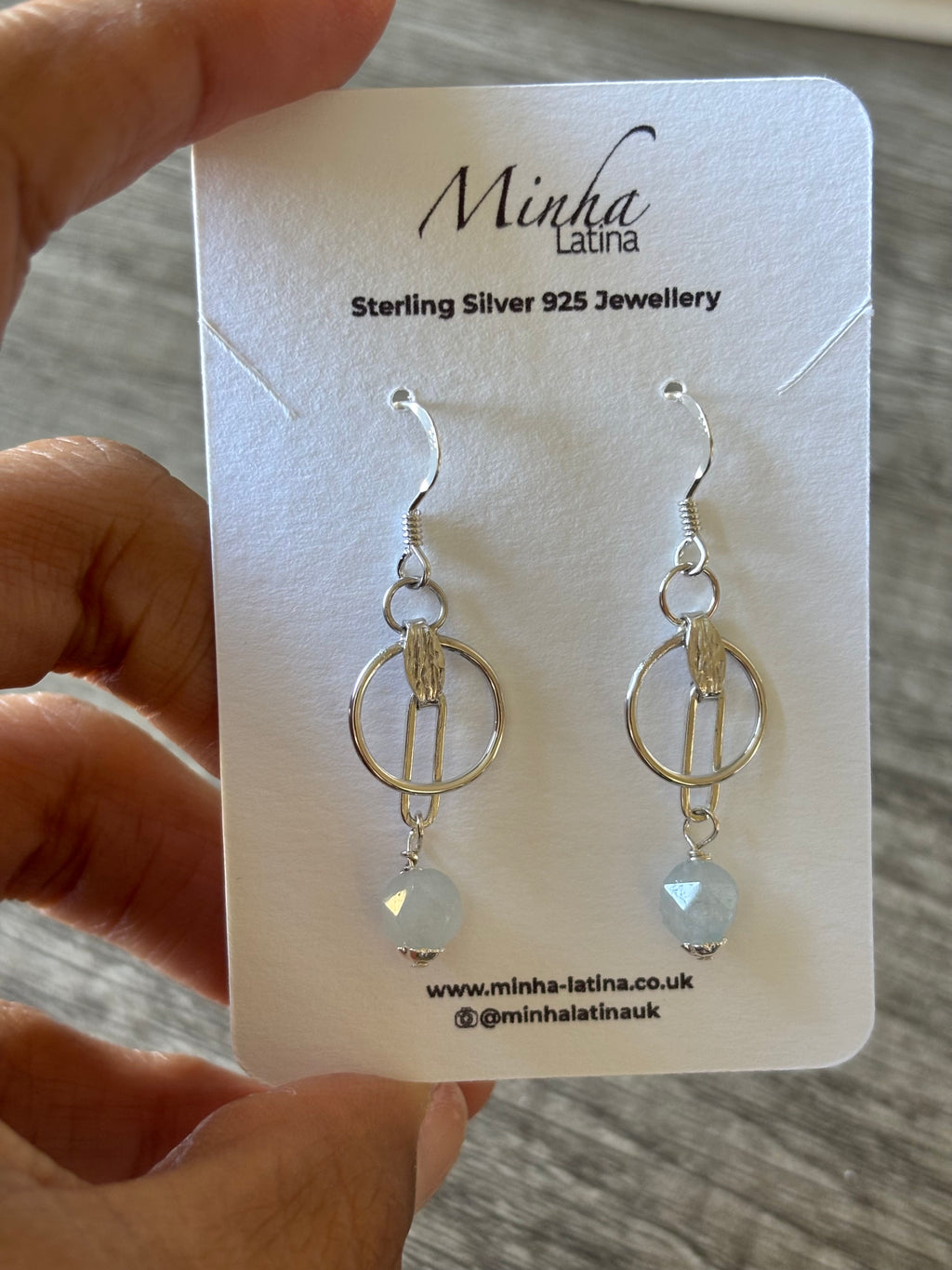 These elegant aquamarine drop earrings feature a sleek sterling silver circle design, making them versatile enough for both everyday wear and special occasions. Lightweight at just 2.3 g, they are comfortable to wear all day while adding a touch of sophistication.