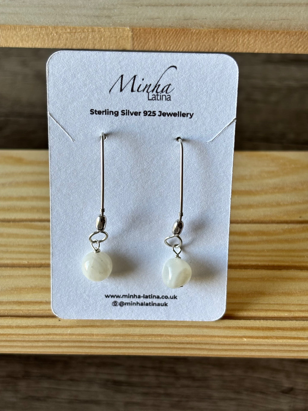 Elegant and timeless, these Sterling Silver Moonstone Drop Earrings feature genuine natural moonstone gemstones that shimmer with soft, iridescent hues. Handcrafted with premium 925 sterling silver, they offer a graceful long-drop design perfect for both everyday wear and special occasions.