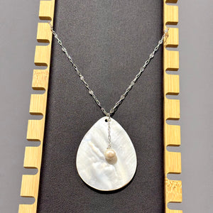 This elegant Sterling Silver Shell & Freshwater Pearl Necklace is a timeless piece inspired by natural coastal beauty. Featuring a smooth, teardrop-shaped shell pendant with a soft iridescent finish, it is finished with a delicate freshwater pearl suspended on a fine sterling silver chain.