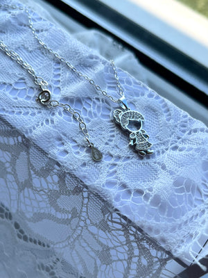 Sie suchen ein hübsches Silberstück? Die Halskette „Dynasty Girl“ ist die süßeste – klein und voller glänzender Zirkoniasteine.