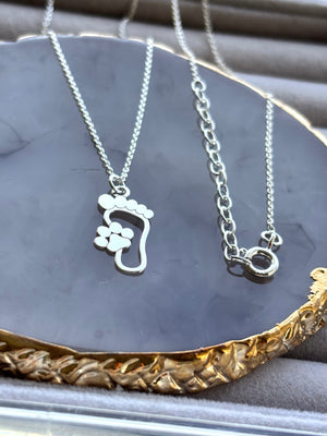 Elegant, minimalist, and deeply meaningful, the Step with Me – Gaia Edition necklace beautifully symbolises the shared journey between human and dog. Crafted with love and inspired by Gaia, this delicate piece features a graceful foot outline intertwined with a paw, representing loyalty, love, and lifelong companionship.