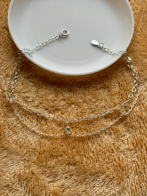 Steigern Sie Ihre Eleganz mit unserem Fußkettchen mit doppelter Kristallkette. Dieses atemberaubende Stück aus hochwertigem Sterlingsilber verfügt über schimmernde Kristalle, die das Licht wunderschön einfangen. Perfekt gestaltet mit einer vielseitigen Kettenlänge von 22 bis 25 cm sorgt es für einen bequemen Sitz. Mit einem Gewicht von nur 3,0 Gramm ist dieses zarte Fußkettchen ein exquisites Accessoire für jeden Anlass. Verleihen Sie Ihrer Schmucksammlung mit diesem luxuriösen Fußkettchen einen Hauch von Glanz.