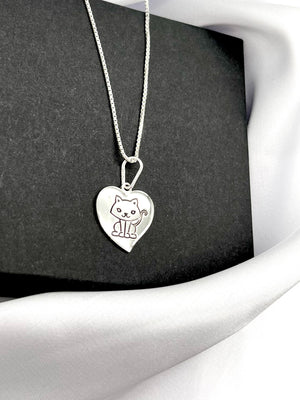 Charming and heartfelt, this Sterling Silver Love Cat Necklace features a delicate heart-shaped pendant engraved with an adorable cat design — a perfect piece for animal lovers and minimal-style enthusiasts alike.